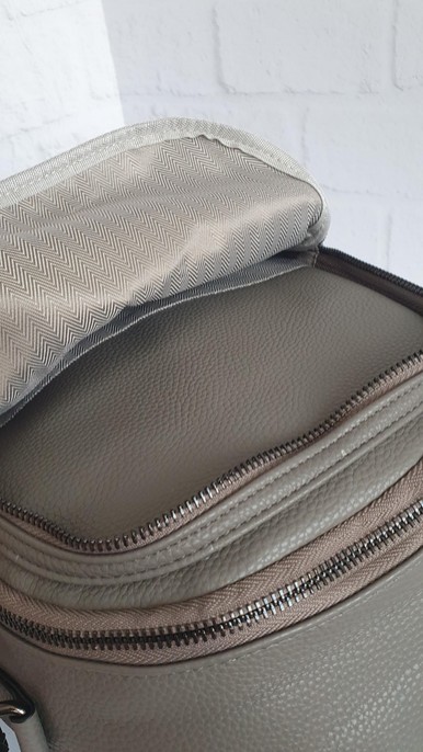 Внутри: 2 кармана на молнии для документов, открытый небольшой отдел, открытый карман для телефона, ключей